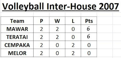 Here are the results of this year's Volleyball Inter-House organised by SMPAPHM's Volleyball Club.